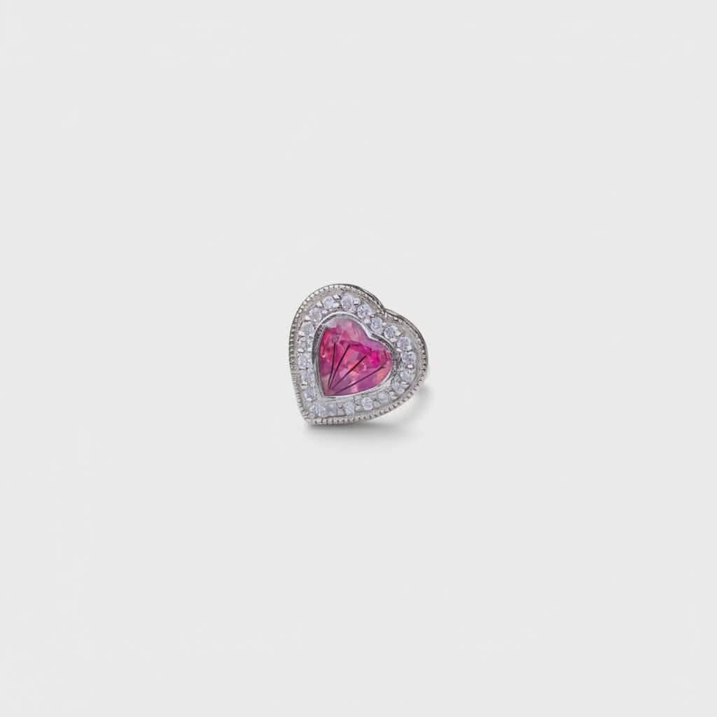At the centre is a delicate heart filled with your chosen inclusions, ashes, hair/fur or breastmilk, carefully preserved within. Surrounding the centre is a sparkling halo, that adds a timeless touch of elegance, making this charm both meaningful and beautifully wearable.