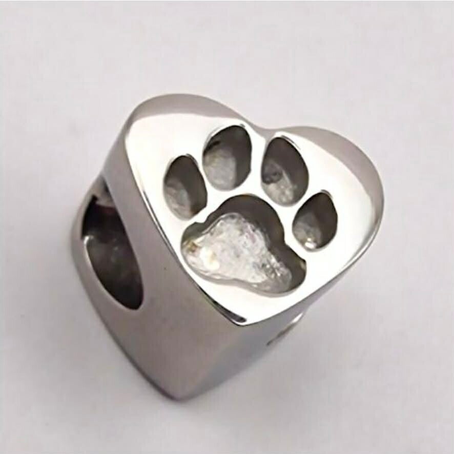 This beautifully crafted stainless steel charm is a touching tribute to a beloved pet. Designed with a heart-shaped outline and a delicate paw in the centre to hold your inclusions.